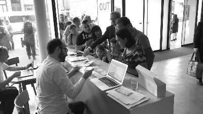 布魯塞爾國家劇院大廳,網上訂票觀眾在取票。