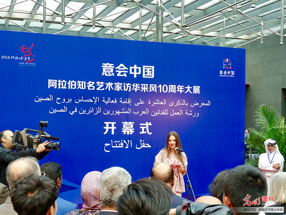 2018年10月22日,由中華人民共和國文化和旅游部、中華人民共和國外交部、阿拉伯國家聯盟、四川省人民政府共同主辦,中國對外文化集團公司和國家大劇院承辦的“意會中國——阿拉伯知名藝術家訪華采風10周年大展”在國家大劇院開幕。本次展覽是對文化和旅游部主辦的“意會中國——阿拉伯知名藝術家訪華采風活動”十年成果的梳理和總結,共計展出60件繪畫和20件雕塑藝術精品。“意會中國——阿拉伯知名藝術家訪華采風創作活動”自2009年以來持續舉辦了十屆。十年間,22個阿拉伯國家的158位藝術家,在以北京為起點的中華大地上用眼睛觀察中國、用心靈感受中國、用畫筆描繪中國,共計創作出475件繪畫和雕塑作品。這些作品由中國文化和旅游部收藏,成為中阿友誼在藝術領域的重要結晶。
