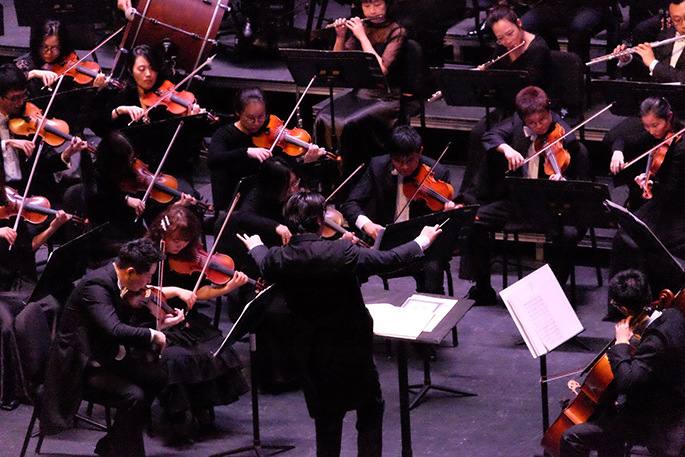 以上曲目對樂隊的所有聲部,尤其木管、銅管聲部的演奏技藝、音色的展現及各聲部之間的配合提出了很高的要求。在上海歌劇院青年指揮家張誠杰、鋼琴家宋思衡、首席陳陽岳彤3位“80后”青年音樂家的帶領下,樂團的演奏層次豐富又充滿張力,贏得了觀眾的一致贊賞。
