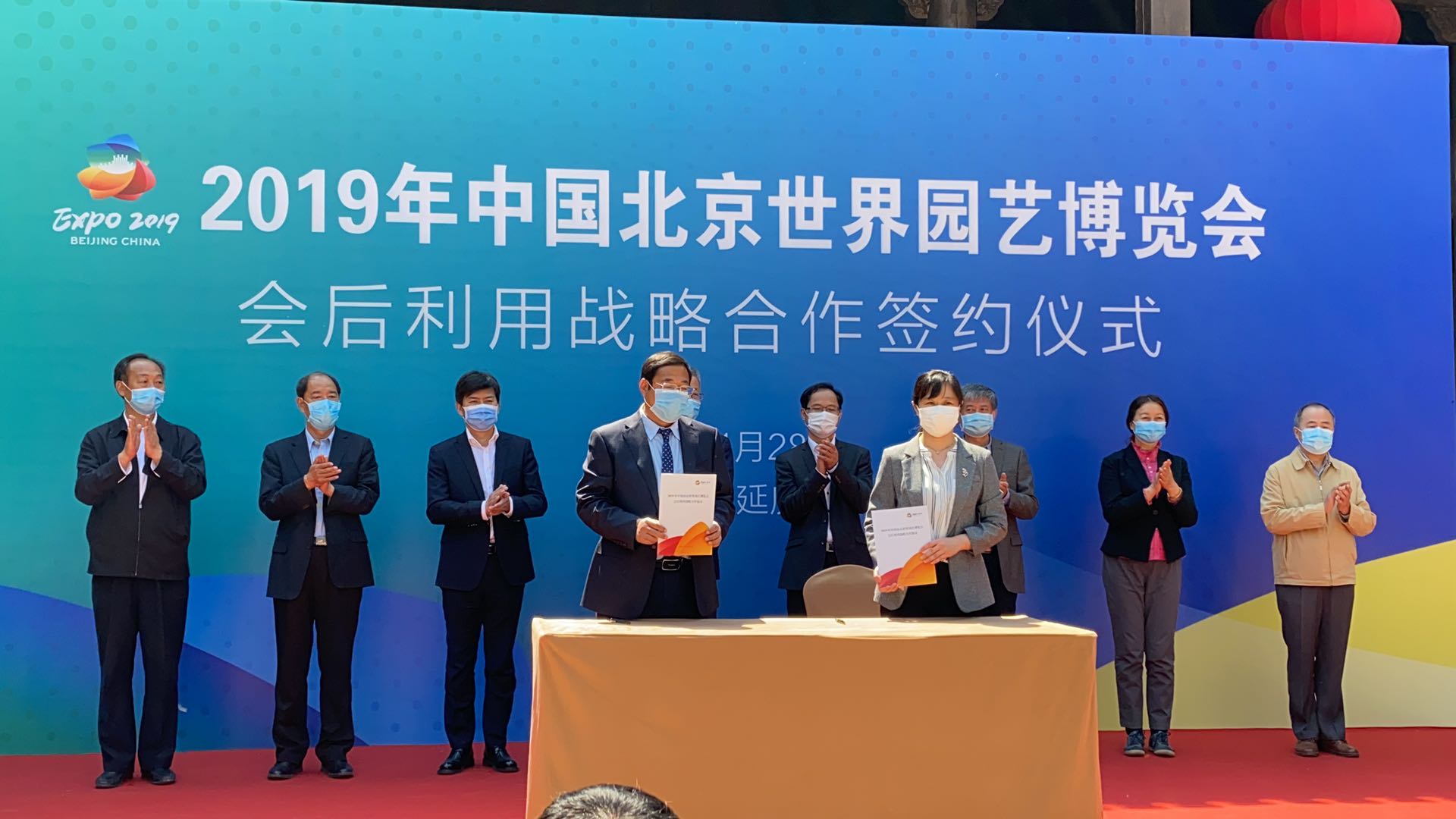 4月28日,在2019北京世園會開幕一周年之際,"北京世園會會后利用戰略合作簽約儀式"在園區舉行,集團旗下全資子公司中國文化國際旅行社有限公司,與北京花卉協會、中關村科技園區延慶園管理委員會、北京文投國際控股有限公司等七家單位一起,成為北京世園投資發展有限公司首批戰略合作簽約伙伴。中國文化國際旅行社有限公司將在集團公司的支持下,充分利用自身現有文旅資源及舉辦大型藝術節慶及演出活動的資源及專業經驗,助力北京世園公園舉辦各類文化旅游及節慶演出活動,打造"永不落幕的世園會"。當天,以"春華繽紛世園"為主題的北京世園公園揭牌儀式隆重舉行。中國花卉協會會長江澤慧,北京市副市長王紅,中國對外文化集團有限公司黨委書記、董事長李金生等為北京世園公園揭牌。