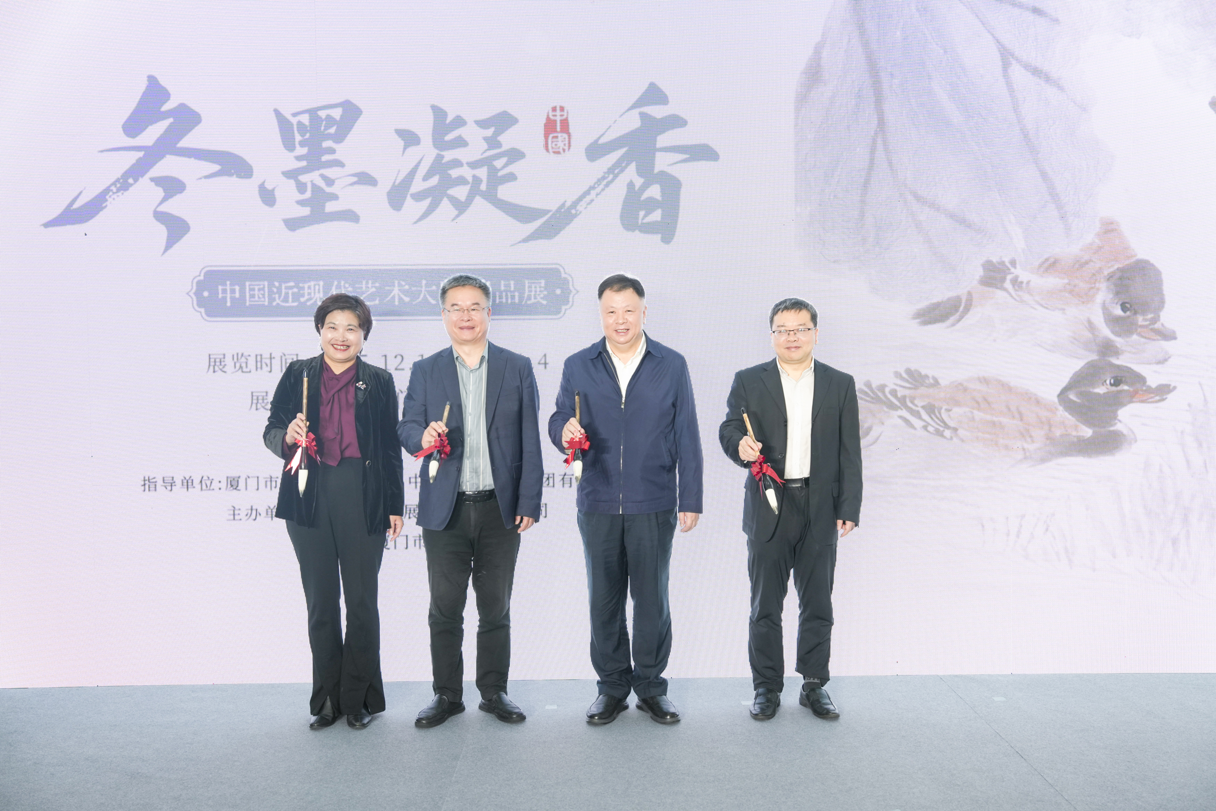 12月13日,中國對外文化集團海西總部揭牌儀式暨“冬墨凝香——中國近現代藝術大師精品展”開幕活動在廈門市博物館隆重舉行。這標志著作為對外文化交流“國家隊”和“主力軍”的中國對外文化集團正式落子廈門,開啟了立足海西、輻射兩岸、聯通國際的文化交流新篇章。中國對外文化集團黨委副書記、董事、總經理郭利群,中國對外文化集團海西總部總經理、中演演出院線發展有限責任公司常務副總經理洪寧,廈門市委市政府及各企事業單位嘉賓,以及中演演出院線發展有限責任公司在福建各直營劇院領導等嘉賓共同出席活動。
