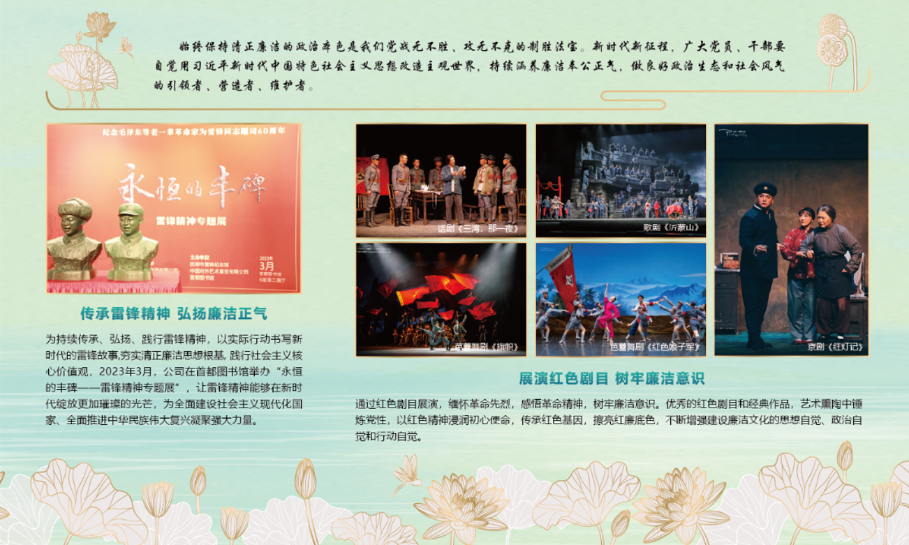2023年,公司紀(jì)委按照集團(tuán)紀(jì)委工作部署,組織開展“廉潔文化教育月”活動,共征集34篇“清正在德,廉潔在志”主題家風(fēng)家訓(xùn)征文和156件攝影、書法、繪畫等廉潔文化主題作品,以“德鑄忠誠廉潤紫荊”為主題開展廉潔文化長廊建設(shè),把嚴(yán)的要求傳遞到最基層。2025年,推動開發(fā)廉潔文創(chuàng)產(chǎn)品,制作了蓮花主題的桌墊,在廉潔文化主題黨日活動中發(fā)放,受到了公司廣大干部員工的喜愛,通過這一日常工作中高頻率使用的文創(chuàng)產(chǎn)品,最大程度釋放了廉潔文創(chuàng)產(chǎn)品的影響力。