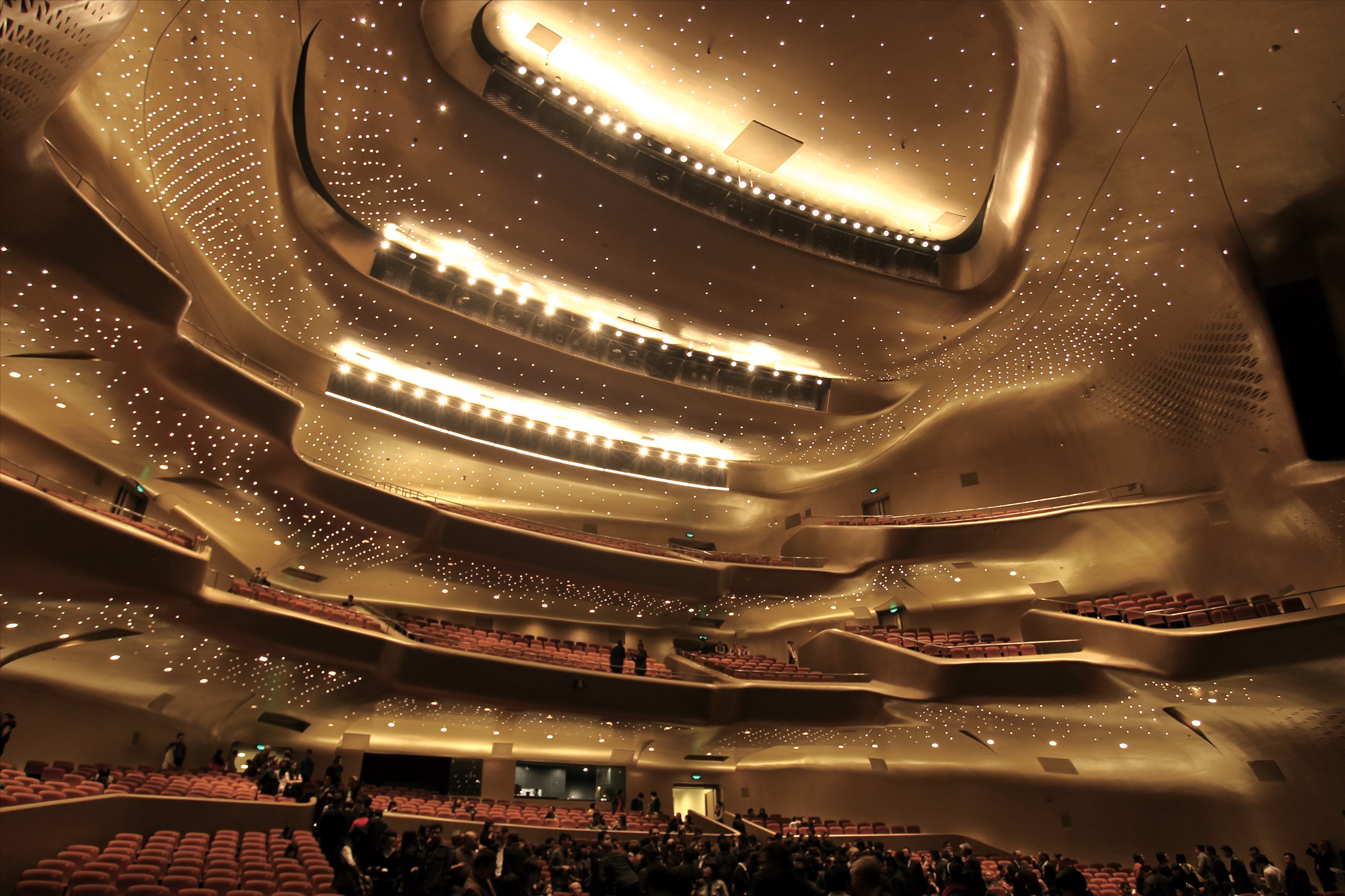 廣州大劇院由第一位獲得“普利茲克建筑獎(jiǎng)”的女性、英籍伊拉克設(shè)計(jì)師扎哈?哈迪德設(shè)計(jì),宛如兩塊被珠江水沖刷過的靈石,奇特的外形充滿奇思妙想。全球頂級(jí)聲學(xué)大師哈羅德?馬歇爾博士,為廣州大劇院精心打造的聲學(xué)系統(tǒng),達(dá)到世界一流水平,使其傳遞出近乎完美的視聽效果,獲得全球建筑界及藝術(shù)家的極高評(píng)價(jià),為中國奪得無數(shù)殊榮。